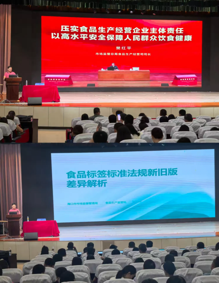2025年8月14日上午,海口市市场监视办理局组织举办2025年海口市食物出产企业(含保健食物)食物平安专题培训班。提拔企业从体义务认识,切实肩负起食物平安的义务担任。要强化事中过后监管,